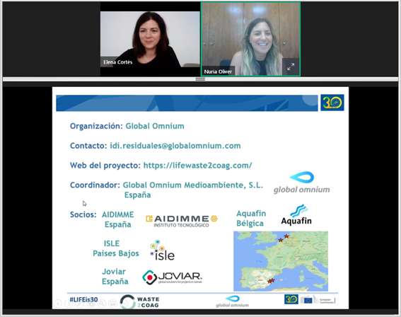 17th June 2022 NewsLIFE Waste2Coag attended the JORNADA INFORMATIVA COMUNITAT VALENCIANA LIFE 2022 + NETWORKING ONLINE on 16 June 2022, Month 9 of the project. Dr Nuria Oliver presented the project under the title "Recovery of brines and metallic waste in the production of coagulants for wastewater treatment".